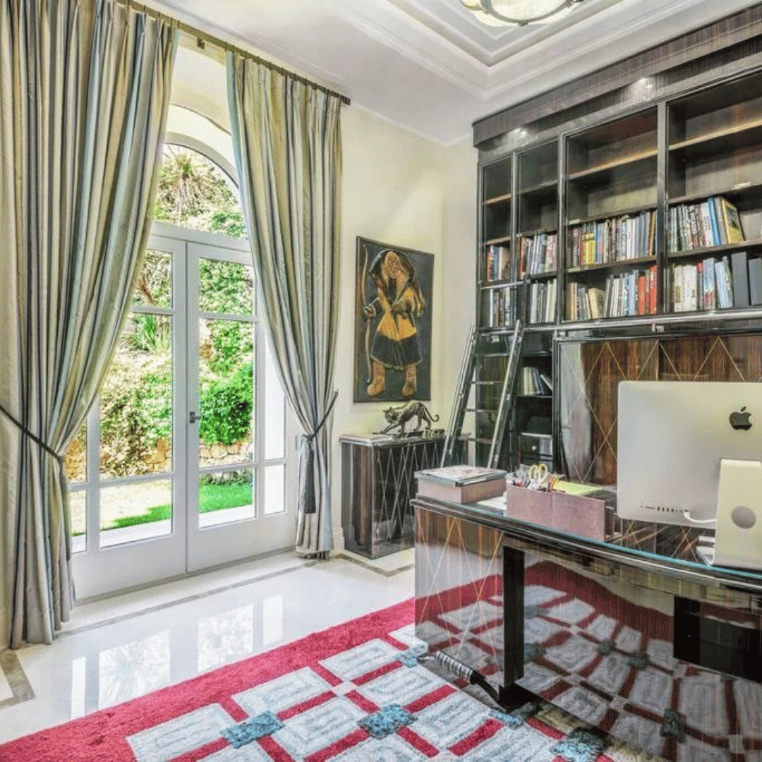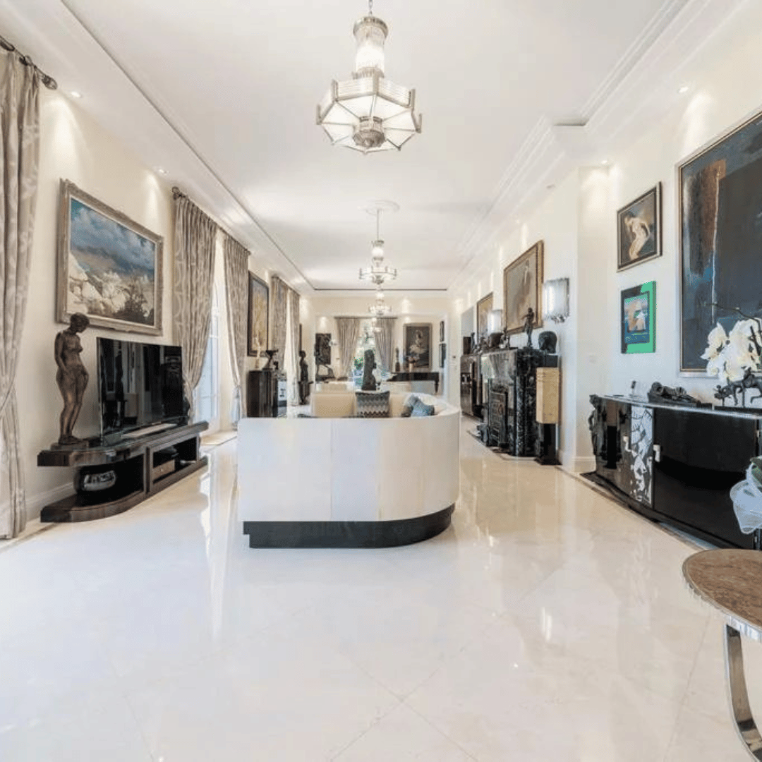 L’intérieur est haut de gamme. La villa dispose de la climatisation, du chauffage central, de la domotique, et d’un système de sécurité sophistiqué. La maison principale comporte un grand salon et une cuisine moderne. Elle possède également plusieurs chambres en suite. Un espace spa avec sauna est aussi inclus.