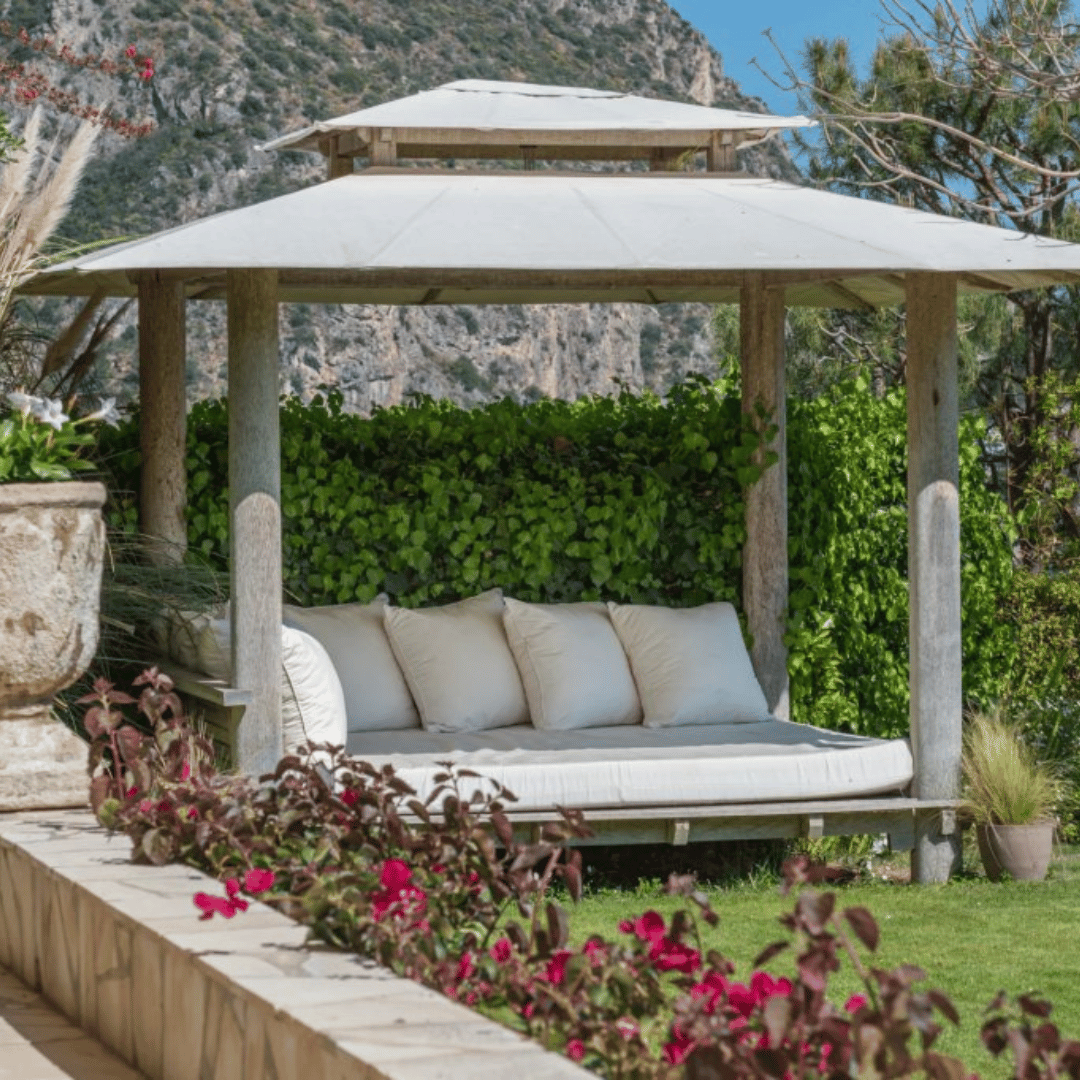 Les jardins privés, paysagers et généreux de 2 933 m² offrent une vue imprenable sur la Méditerranée. Situés à quelques pas de la plage, ils invitent à la détente dans un environnement calme et prestigieux.
