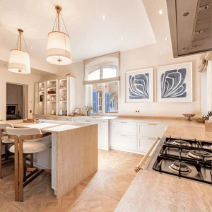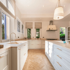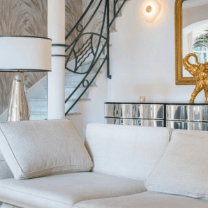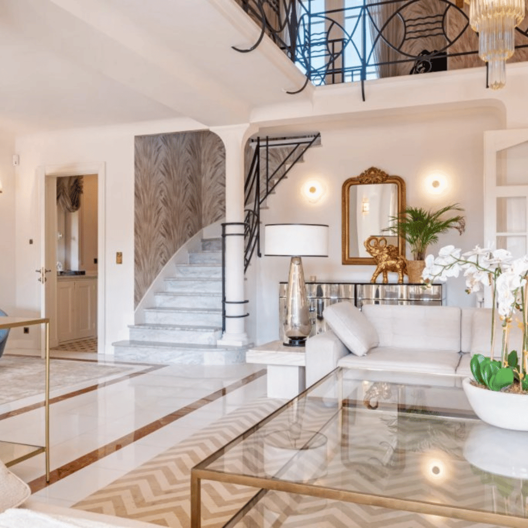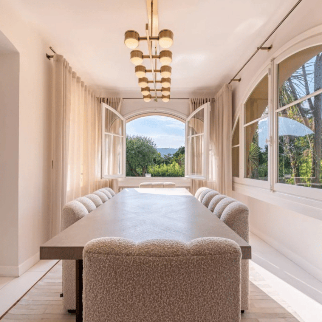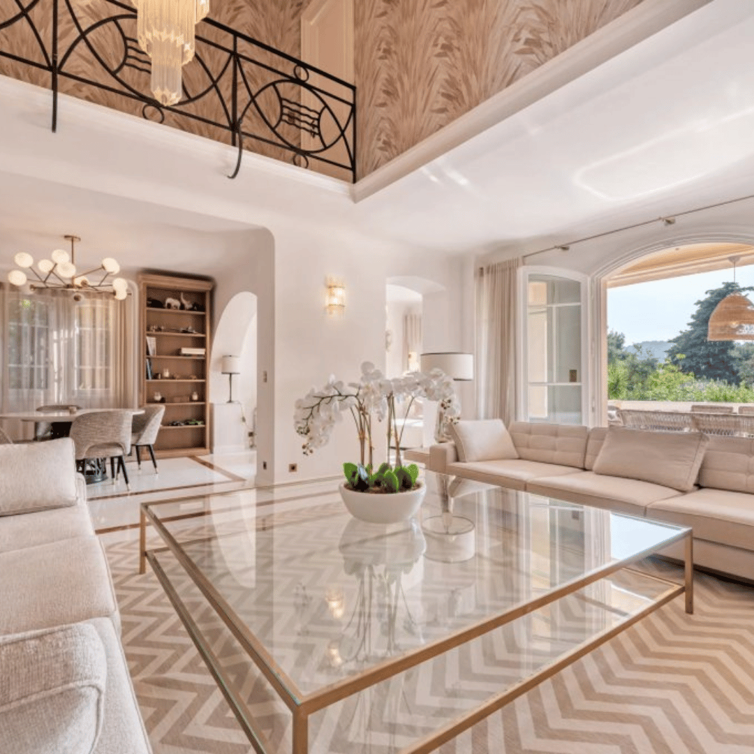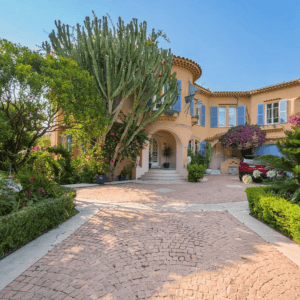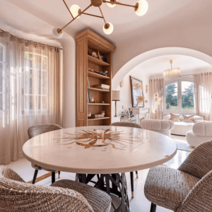 Construite sur un terrain plat de 1200 m², la villa présente une architecture art déco provençale. Elle s’intègre parfaitement dans le relief et la végétation locale. Dès l’entrée, vous appréciez la décoration soignée et un agencement harmonieux. La maison offre 430 m² habitables, répartis sur trois niveaux.