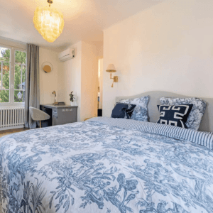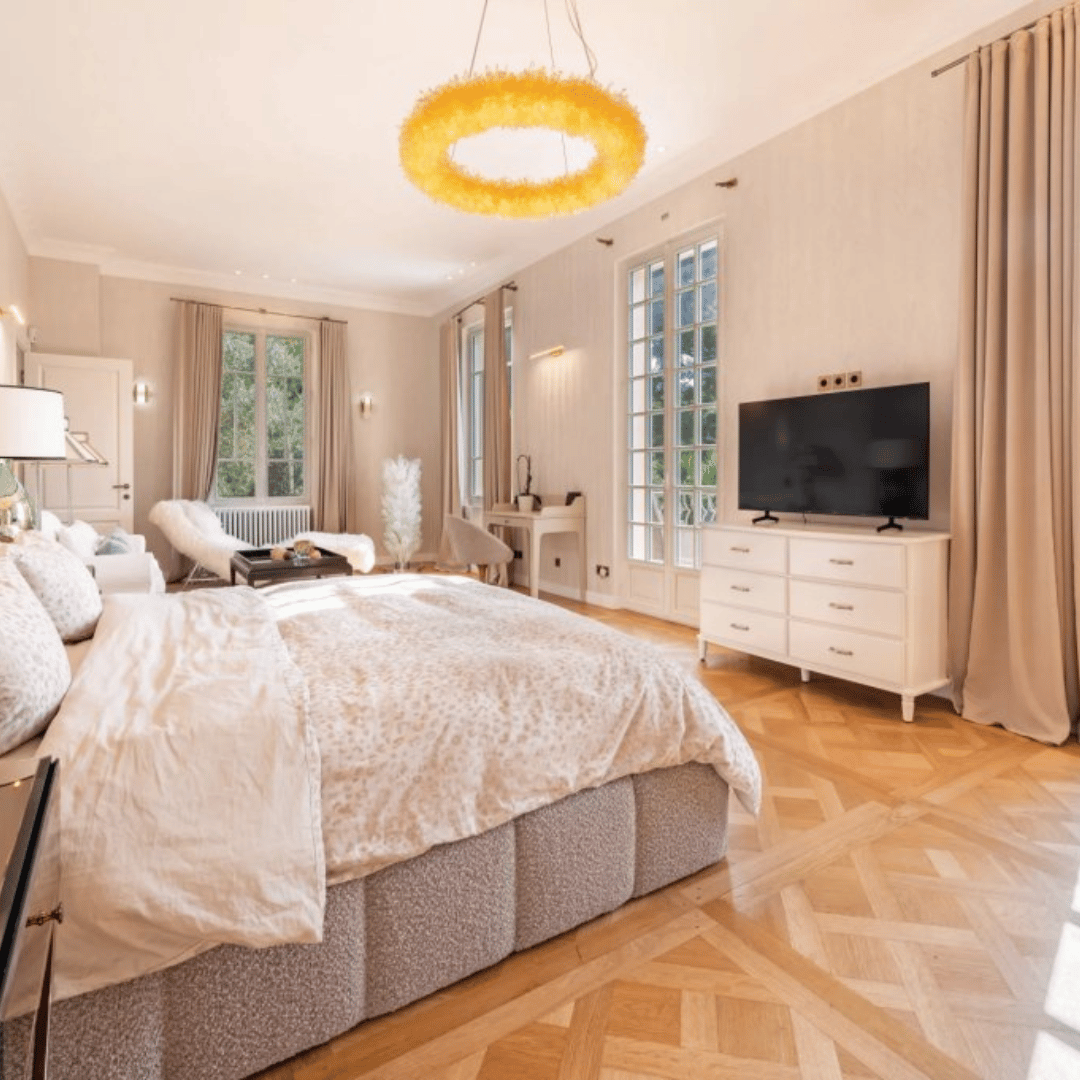 Les cinq chambres, dont une suite parentale, offrent un confort optimal. Si vous le souhaitez, vous pouvez transformer l’une d’elles en une sixième chambre. La propriété comprend aussi une zone détente avec un second salon, un coin TV, un spa, et une cuisine d’été. Ces espaces vous permettent de profiter pleinement du soleil et de la douceur de vivre locale.