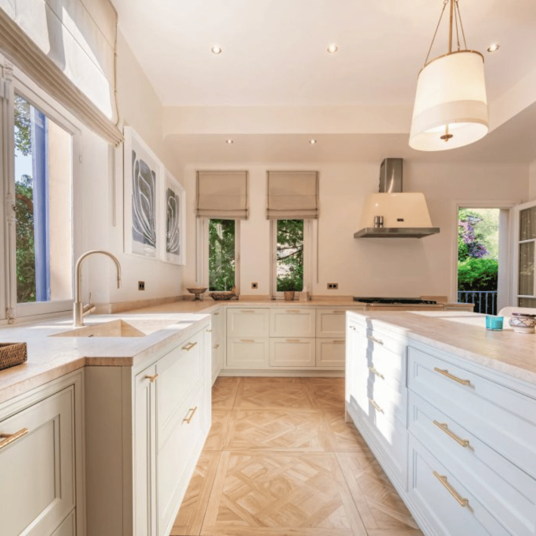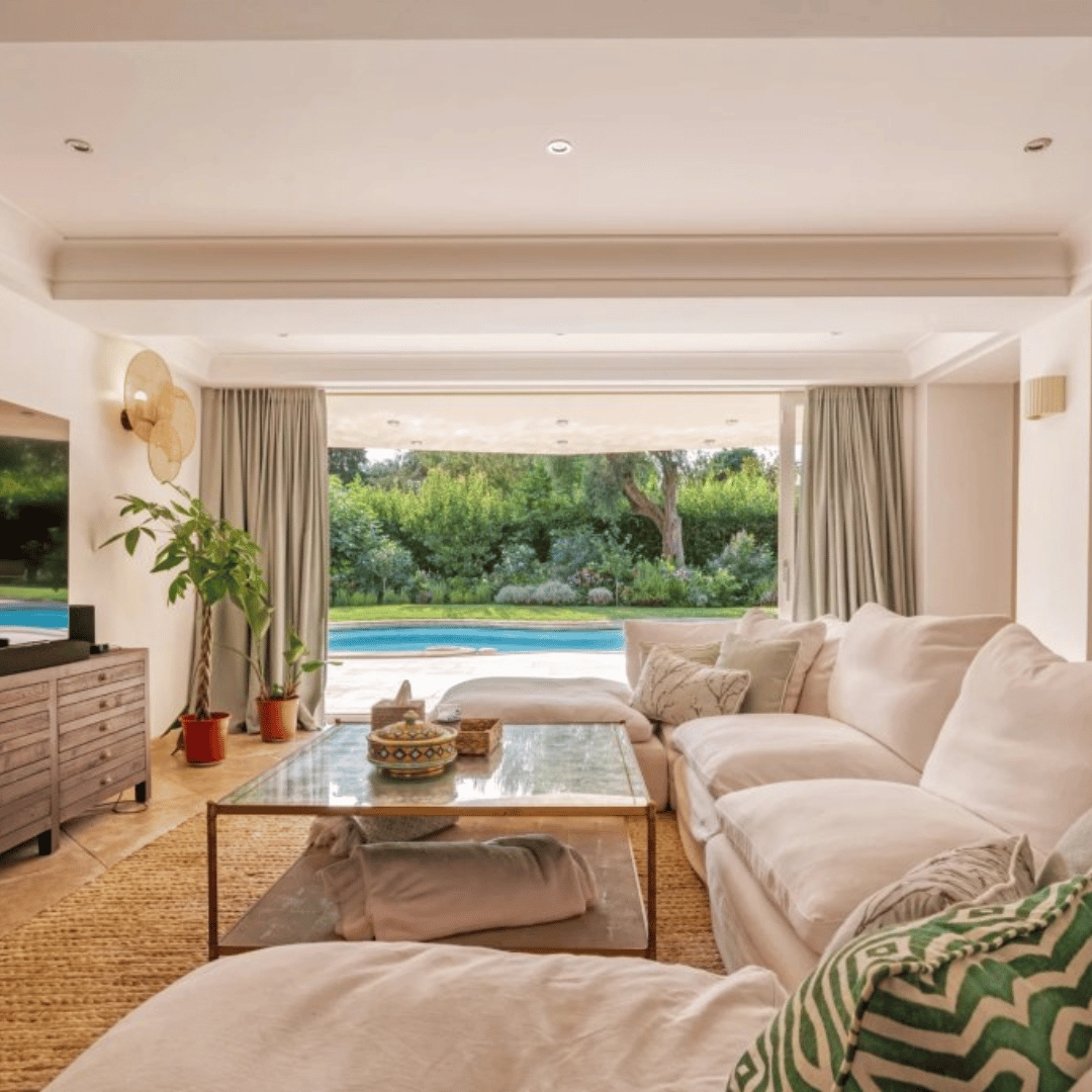 Les espaces de vie principaux sont lumineux et ouverts. De grandes fenêtres laissent entrer la lumière naturelle. La pièce centrale combine un salon, une salle à manger et une cuisine équipée. Elle s’ouvre sur une terrasse magnifique, offrant une vue paisible sur le jardin. Parfait pour profiter du climat méditerranéen.