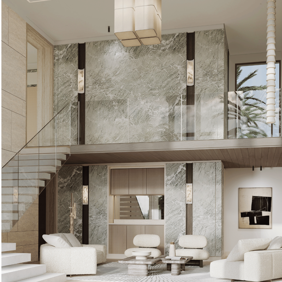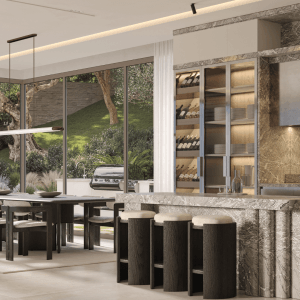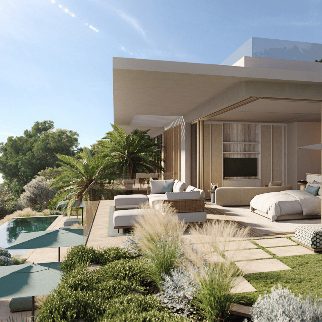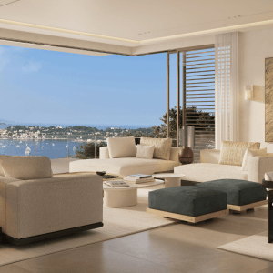 Le rooftop de 200 m², aménagé en espace lounge, bar et zone dînatoire, offre une vue imprenable pour des soirées exceptionnelles face à la mer. La villa comprend également cinq suites luxueuses, toutes équipées de salles de bains modernes. La suite principale se distingue par sa grandeur et sa vue remarquable. La décoration intérieure, confiée à un duo de décoratrices, marie luxe discret et confort.